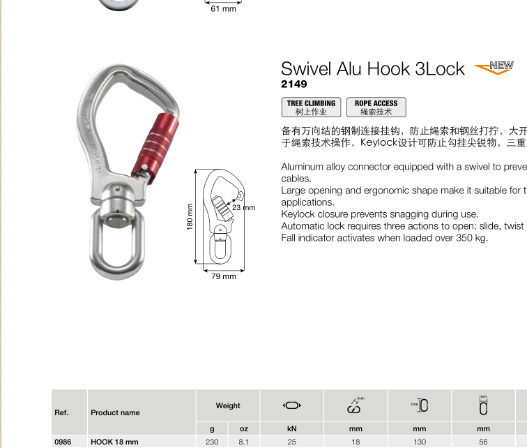 CAMP/坎普 2149 SWIVEL ALU HOOK 设计有360度可旋转的铝制连接挂钩 铝制挂-北京中创汇安科贸有限公司发布日期:2023-6-13